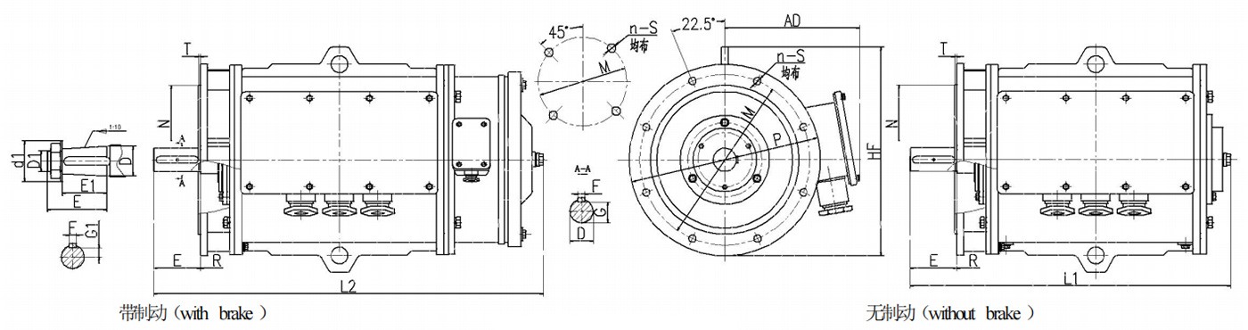 | D | E | F | G | 圆锥形轴伸 | M | N | P | R | S | n | T | AD | HF | L1 | L2 | |||||